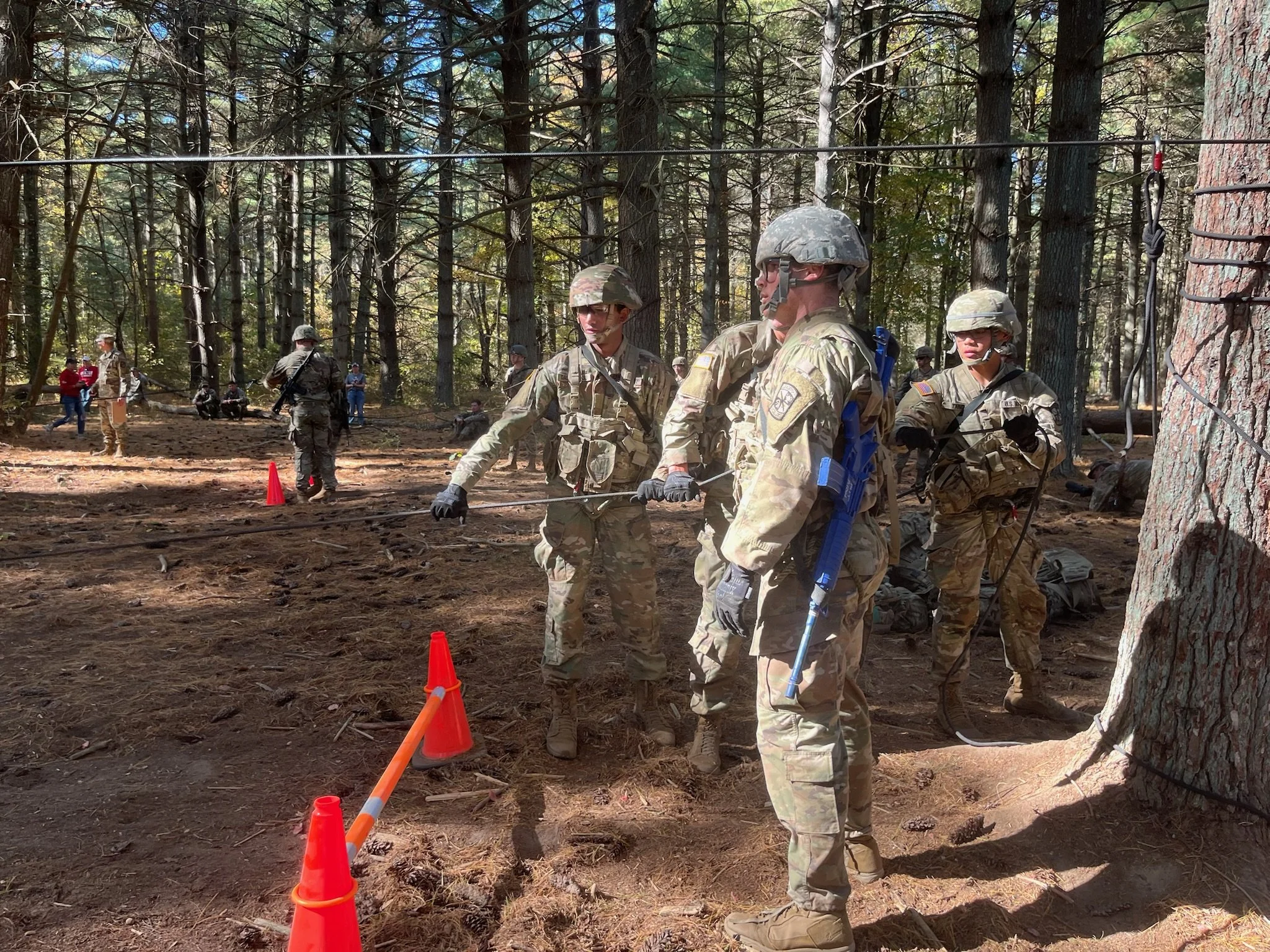 The PRB’s Ranger Challenge team forms early in the semester and trains rigorously to prepare for the 2nd Brigade competition, held yearly in October in Fort Dix. The team is a close-knit group who push each other to get better every day in the midst of training for warrior skills, endurance, strength, and mental fortitude. The yearly competition is dynamic, with changing events and complex rules requiring strategic thinking and coordination on the fly, often under physical duress. Examples of Ranger Challenge events include a team run, ruck, one-rope bridge, tactical combat casualty care, and a burden.